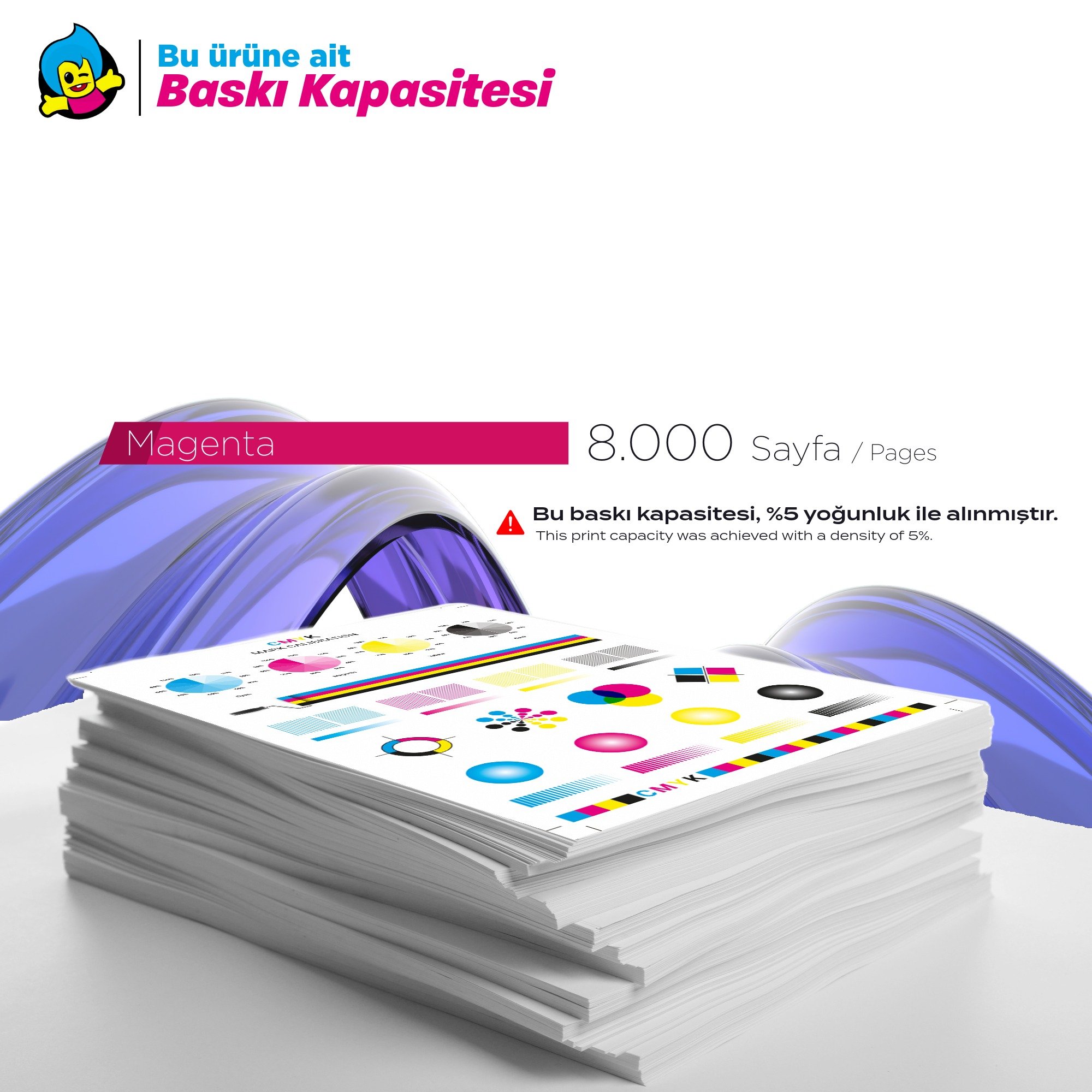 Baskı kapasitesi, ISO standartlarına göre bir A4 kağıdın %5'inin kırmızı mürekkep ile kaplandığı dökümanlar baz alınarak hesaplanmıştır.